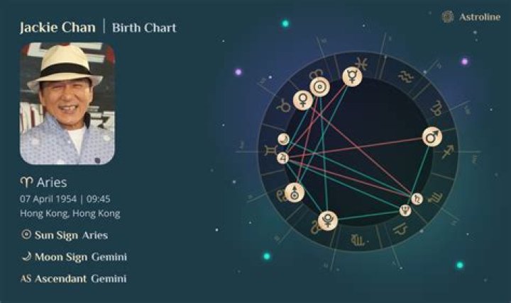 Astrology birth chart of Jackie Chan (Movie Actor) 2024. Discover Jackie Chan's zodiac sign natal chart, astrology chart, Chinese astrology and more.