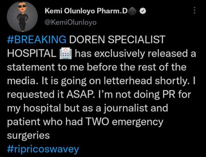 Kemi Olunloyo, a dubious self-acclaimed insightful columnist, has expressed that reality star Rico Swavey died because of getting on the controlling wheel...